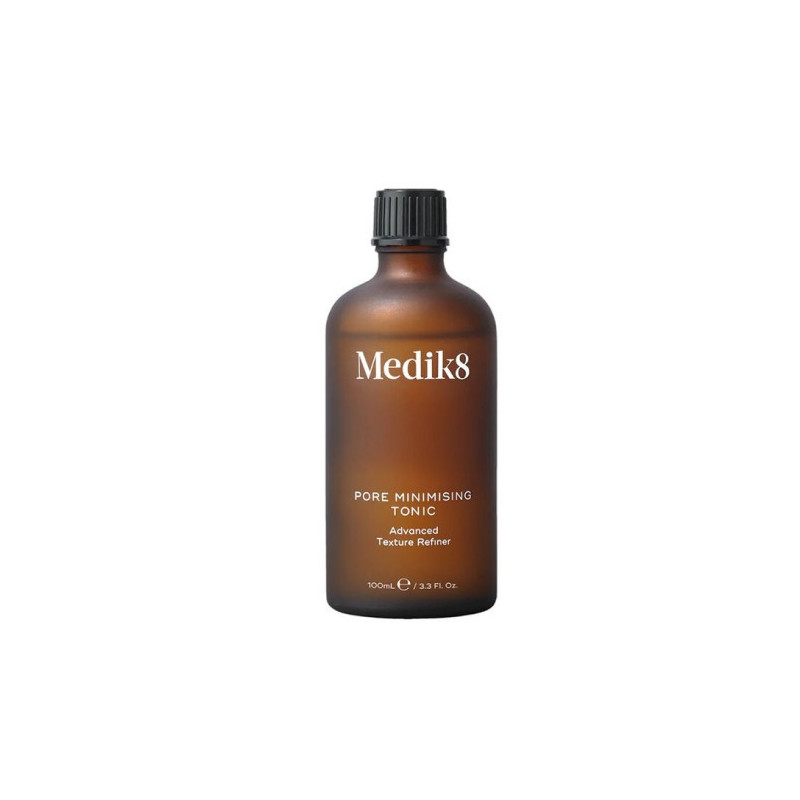 Medik8 Pore Minimising Tonic se presenta en un elegante frasco de 100 ml, diseñado para facilitar su uso diario. El envase es práctico y permite una dosificación controlada, asegurando que se utilice la cantidad adecuada de producto en cada aplicación. Su diseño es moderno y atractivo, lo que lo convierte en un complemento ideal para cualquier tocador.