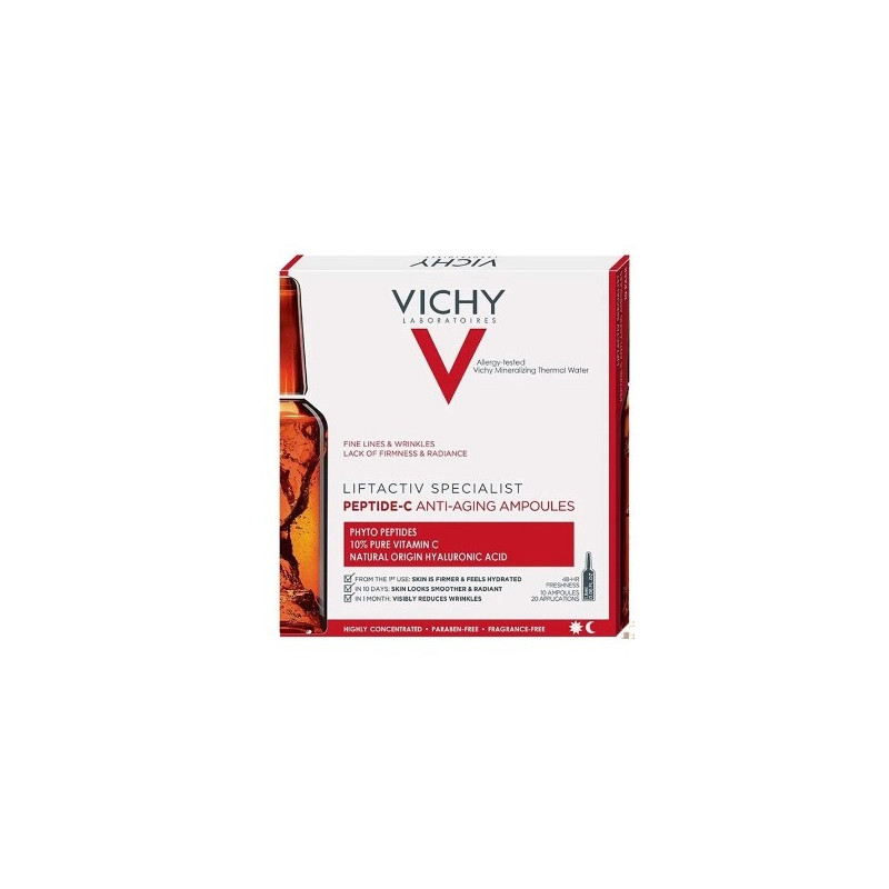 Vichy Liftactiv Specialist Peptide- C Ampollas Antiedad reducen las arrugas y las líneas de expresión, a la vez que mejora la pérdida de firmeza y luminosidad de la piel del rostro.