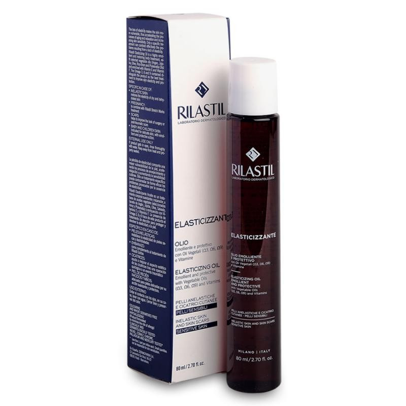 Rilastil Aceite Corporal Elasticidad y Antiestrías, 80ml, es un aceite corporal especialmente desarrollado para ayudar a mejorar la elasticidad de la piel y favorecer la prevención de la aparición de estrías. Su composición se basa en una cuidada selección de aceites vegetales y ácidos grasos esenciales, como los omega 3, omega 6 y omega 9, que contribuyen a mantener la piel nutrida, suave y flexible. Este aceite está indicado para aquellas situaciones en las que la piel puede estar sometida a cambios bruscos de volumen o tensión, como durante el embarazo, periodos de crecimiento, variaciones de peso o en pieles que tienden a la sequedad y la falta de elasticidad.