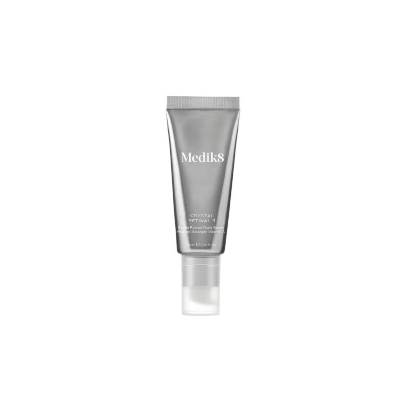 Medik8 Crystal retinal 3 se presenta en un elegante envase de 30 ml, diseñado para facilitar su uso y conservación. El envase cuenta con un sistema de dosificación que permite extraer la cantidad adecuada de producto sin desperdiciar. Su diseño protege los ingredientes de la luz y el aire, asegurando que mantengan su eficacia a lo largo del tiempo. Este producto es ideal para quienes buscan una solución práctica y efectiva para el cuidado de la piel.