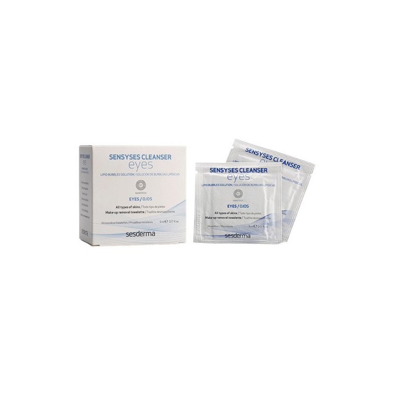 Toallitas desmaquillantes monodosis específicas para la piel sensible del párpado de los ojos y el área del contorno. Efectivas para higiene en profundidad. Solución de burbujas lipídicas idónea para ojos secos, sensibles o que requieren cuidados especiales.