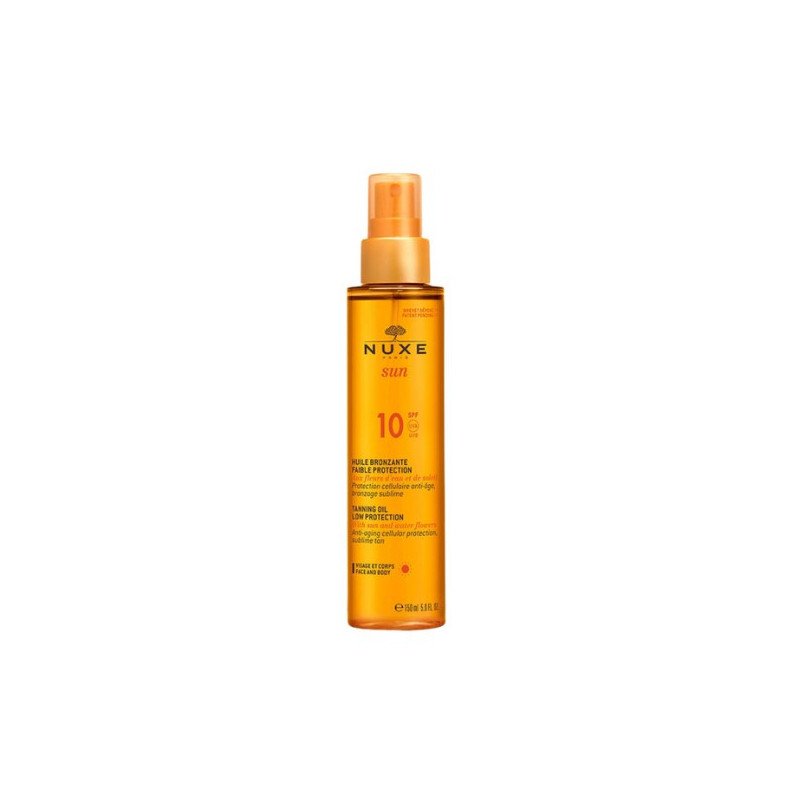 Nuxe Sun aceite bronceador para rostro y cuerpo protección baja SPF10 es un producto diseñado para aquellos que buscan disfrutar del sol mientras cuidan su piel. Este aceite bronceador combina la protección solar con propiedades hidratantes, lo que lo convierte en una opción ideal para quienes desean obtener un bronceado dorado y luminoso sin comprometer la salud de su piel. Su textura ligera y sedosa se absorbe rápidamente, dejando una sensación de suavidad y confort. Este aceite está enriquecido con ingredientes naturales que ayudan a mantener la piel nutrida y protegida durante la exposición solar.